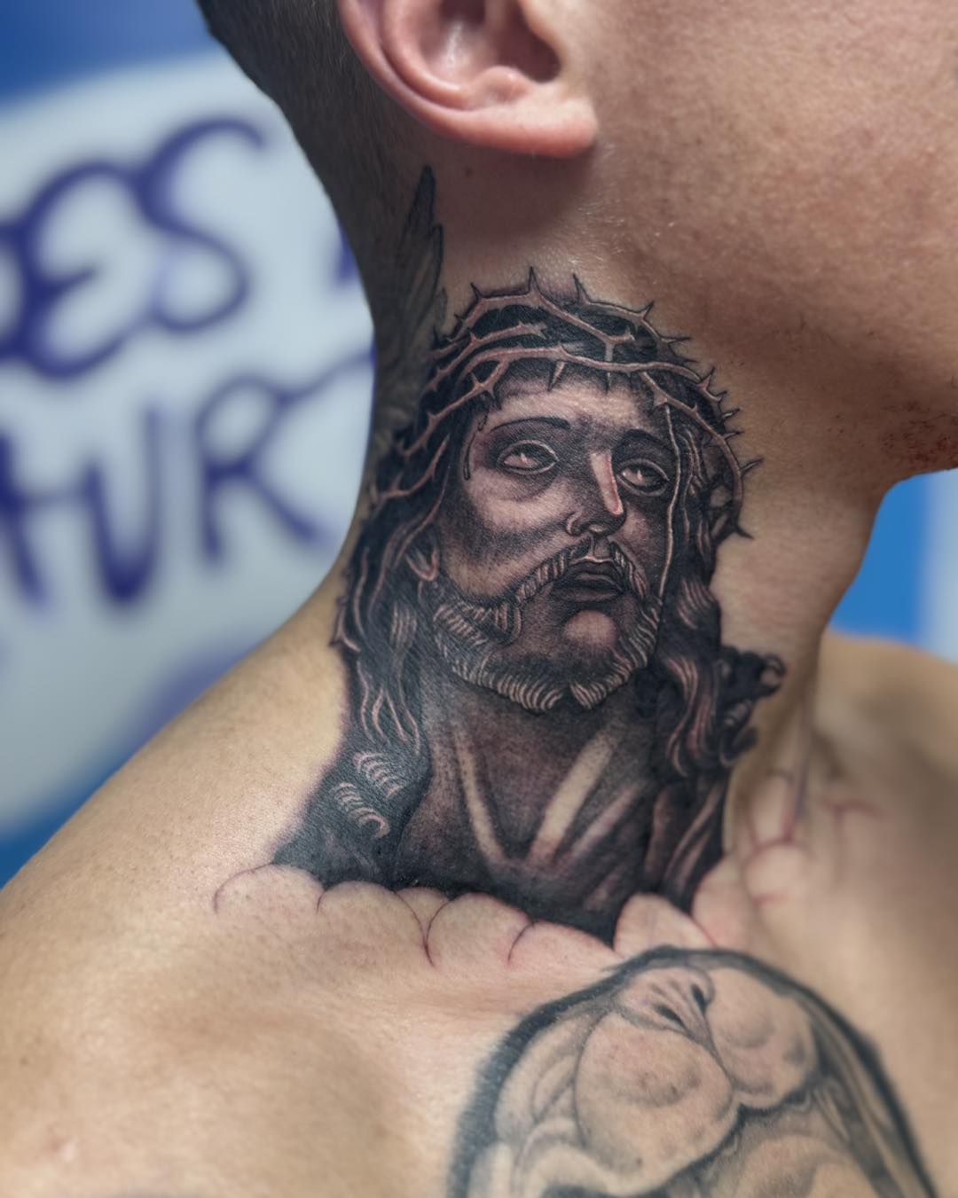 Nate has been tattooing since 2014, specializing in dark, bio-organic freehand work, portraits, Chicano, religious, and anime designs.